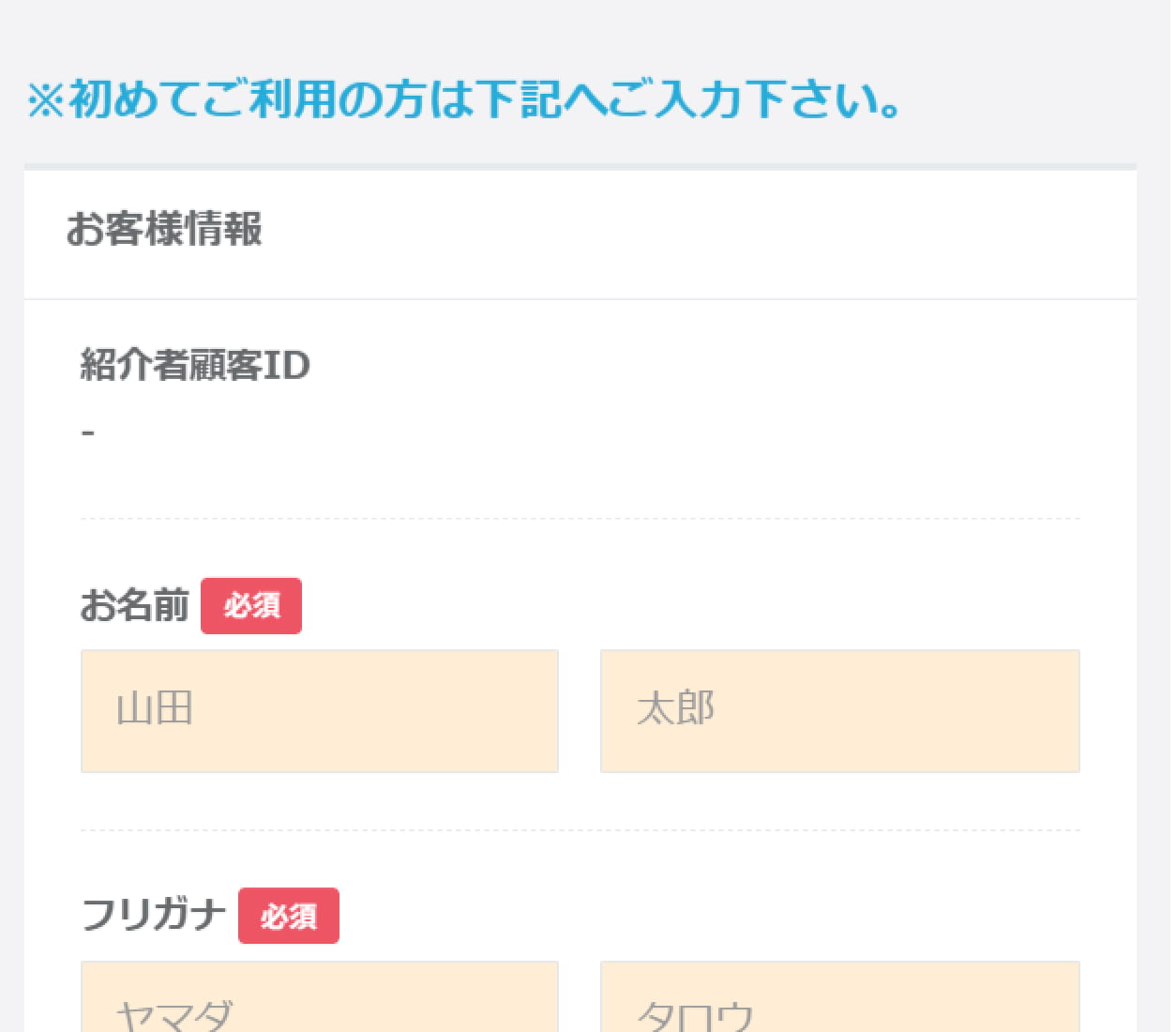 - お客様情報の入力 ※WEB会員登録され、ログイン済みのお客様は省略されます。